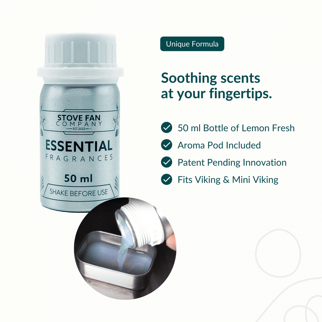 Stellen Sie sich ein Zuhause vor, das nicht nur warm ist, sondern auch einladend duftet. Mit dem integrierten Duftspender im Mini Viking Air Stove Fan können Sie Ihren Raum mit herrlichen Düften erfüllen. Ein paar Tropfen unseres ätherischen Dufts, und Ihr Raum wird mit Aromen gefüllt, die Kochgerüche überdecken oder einfach eine entspannende, spa-ähnliche Atmosphäre schaffen können.